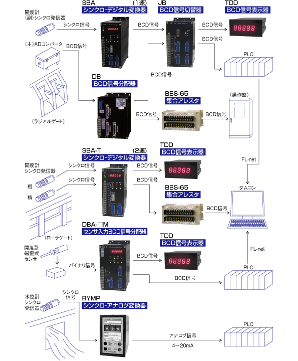 シンクローデジタル変換器は、ゲート開度などのシンクロ発信器の信号をBCD信号に変換する装置です。